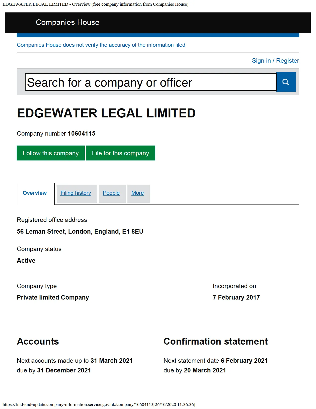 Registration at Companies House