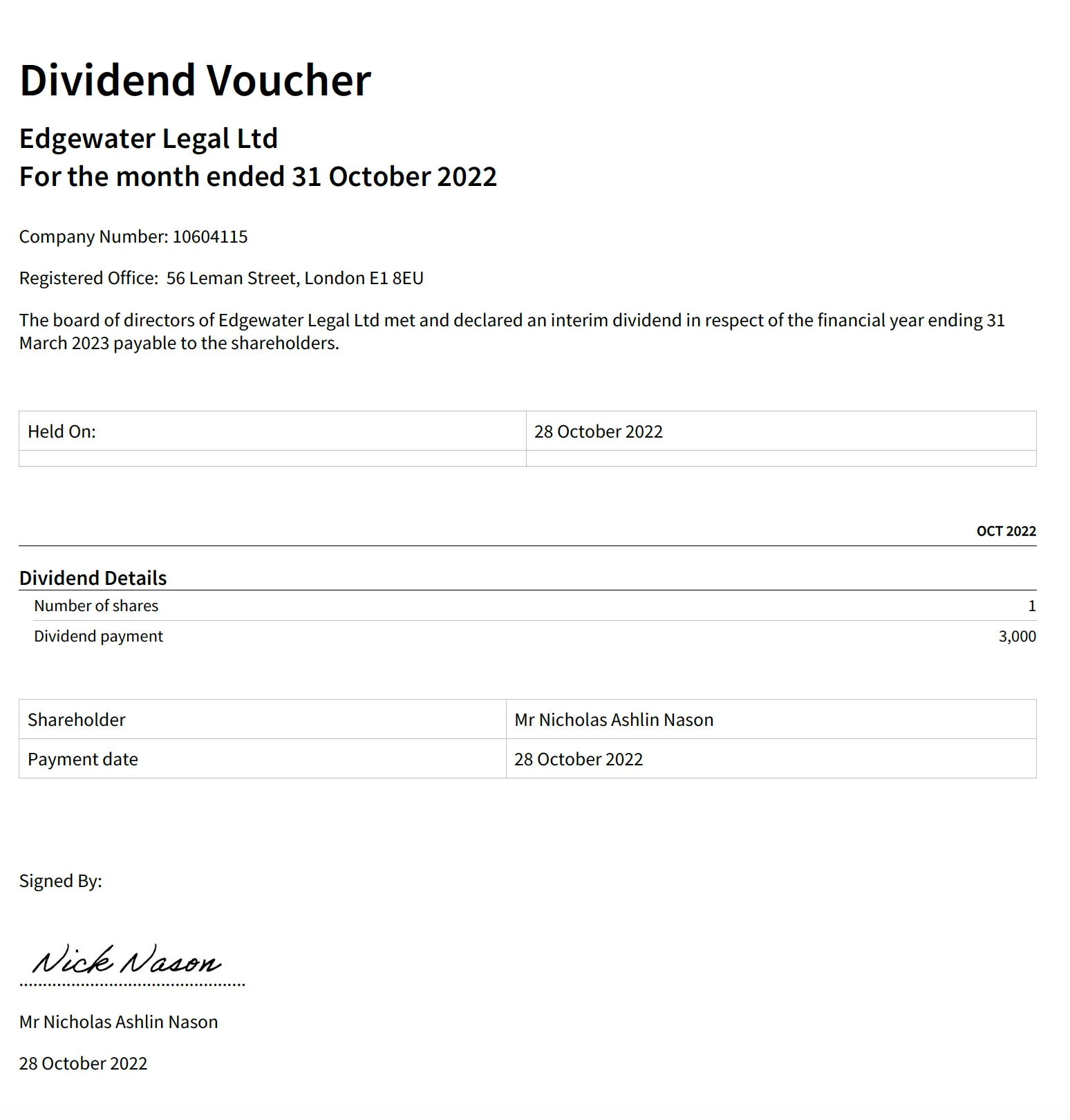 Dividend vouchers are like payslips but for dividends. This is an example of what one looks like: